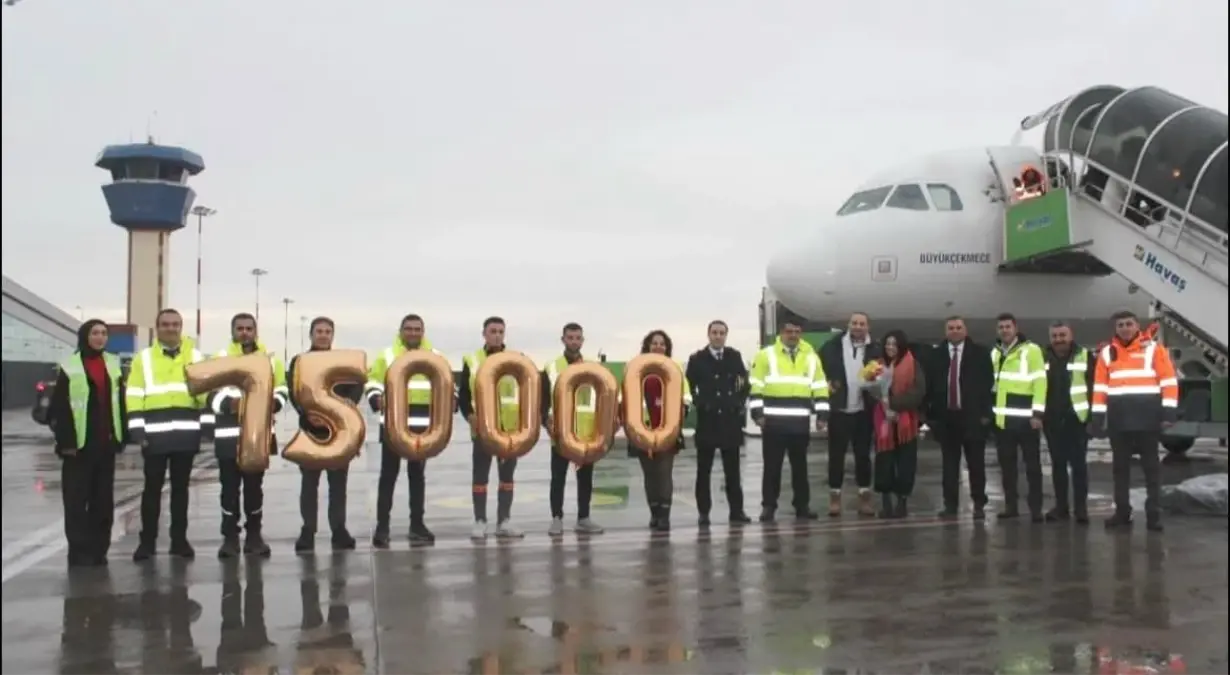 Kapadokya Havalimanı, 2025 yılında 750 bin yolcuya hizmet vererek rekor kırdı. Yılın 750 bininci yolcusu, apronda çiçekler ve hediyelerle karşılandı.